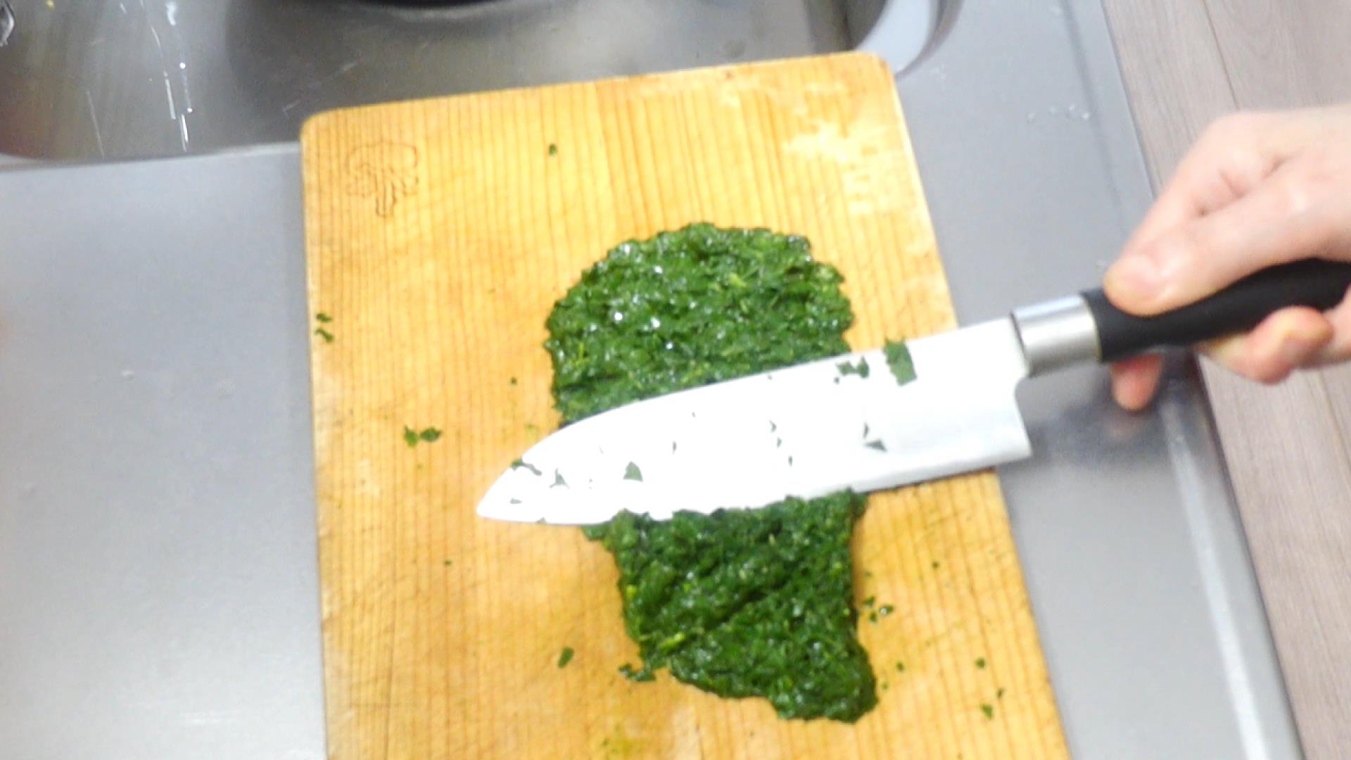 茹でたモロヘイアをペースト状にします。